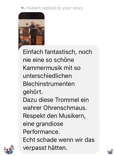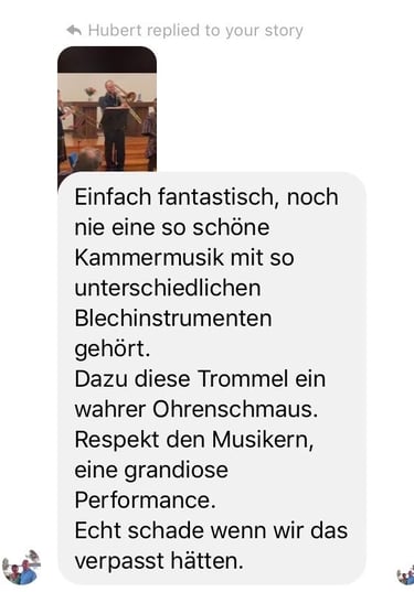 "Einfach fantastisch, noch nie eine so schöne Kammermusik mit so unterschiedlichen Blechinstrumenten gehört.